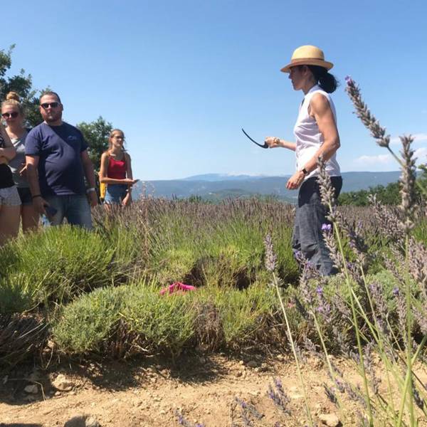 La distillerie s’inscrit dans un paysage emblématique du Vaucluse. Les rangées de lavande en fleur dessinent l’horizon. Le chant des cigales accompagne la visite. L’ambiance reste conviviale et chaleureuse.